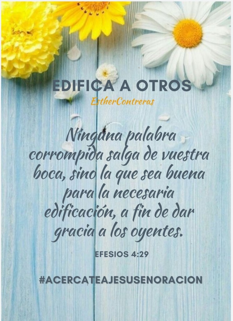 Cada dia tenemos la oportunidad de ser de edificación a otro, hablando cortésmente, teniendo respecto hacia el prójimo independientemente la edad que se tenga, recuerda que ahora eres parte de la familia del Señor, el cuál honramos. Procura siempre animar y ayudarle a otro. Sabiendo que del Señor Jesucristo viene la recompensa. Quita de tus labios palabra o pensamiento desagradables, que puedan ofender a otro, Trata a los demás como quieres ser tratado. Hay poder en las palabras. Que de tus labios sólo salgan bendiciones para los demás. #AcércateAJesúsEnOración #oracion #HayPoderEnElNombreDeJesus #victorias